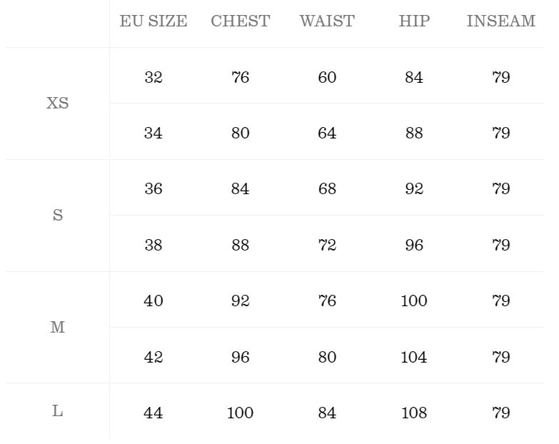 Model is Wearing a Size S. Height is 5'9", Bust is 31”, Waist 24”, and Hips 33”