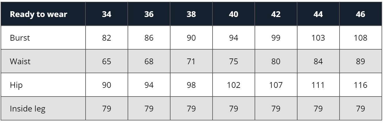 Model is Wearing a Size 36. Height is 5'10", Bust is 31", Waist 24", and Hips 35.8"